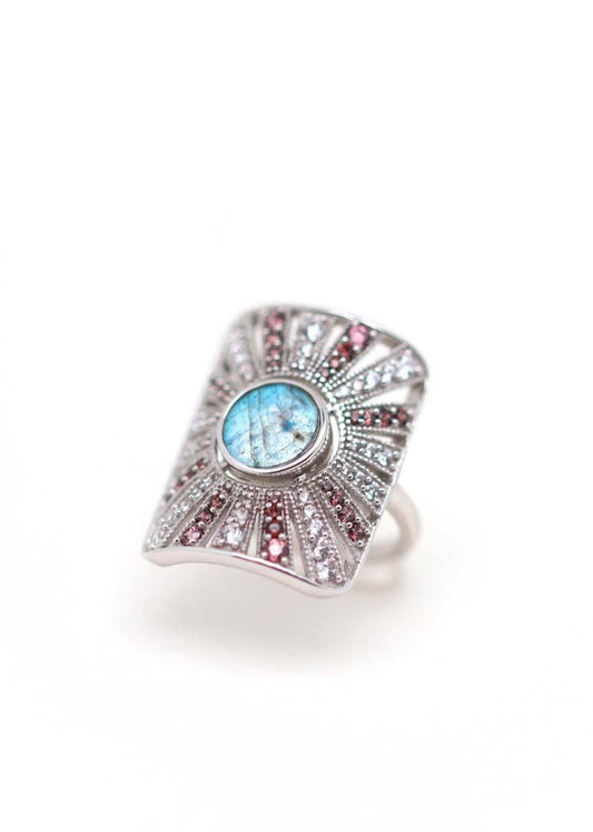 Bague Art Deco Argent Célestine Labradorite et Turquoise