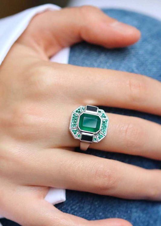 Bague Art Deco Philomène Argent et Onyx vert