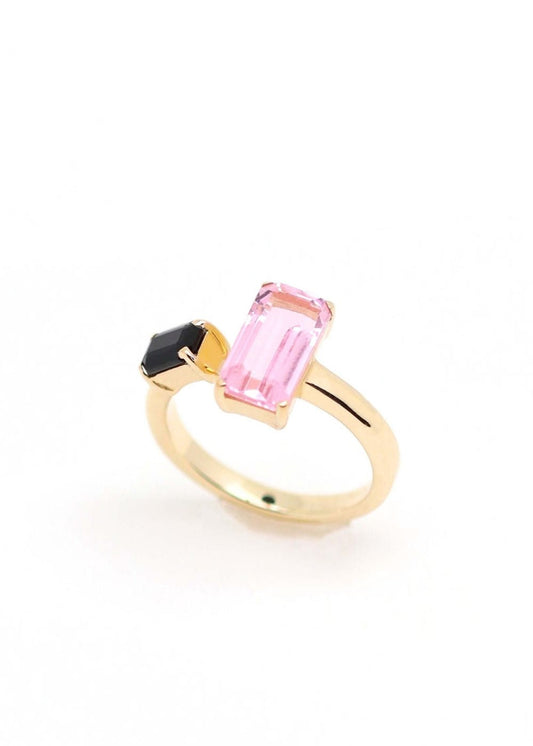 Bague Toi et Moi Odette plaqué or Quartz rose et Onyx noir