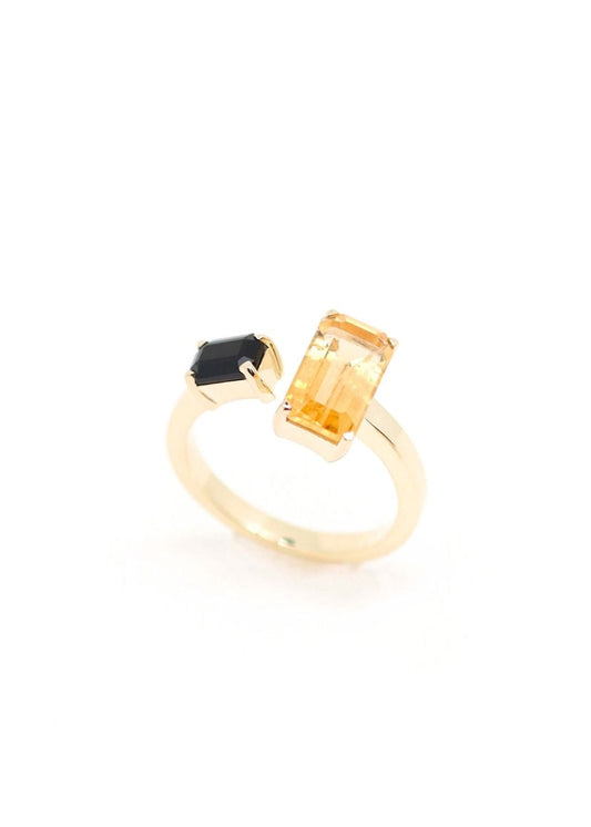 Bague Toi et Moi Odette plaqué or Citrine et Onyx noir
