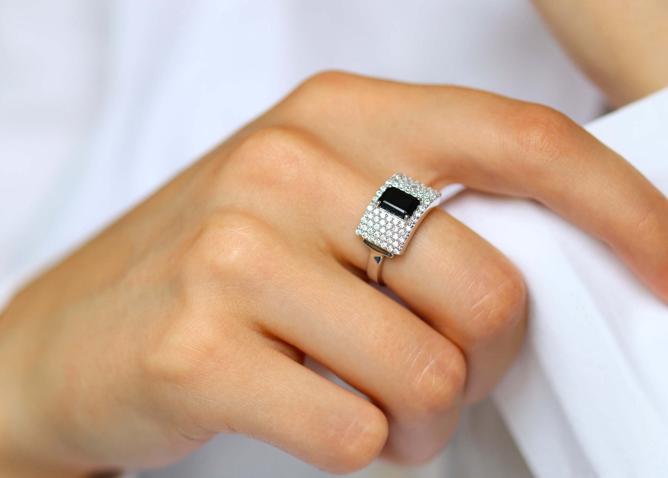 Bague Art Deco Célestine Argent Onyx vert et Onyx noir