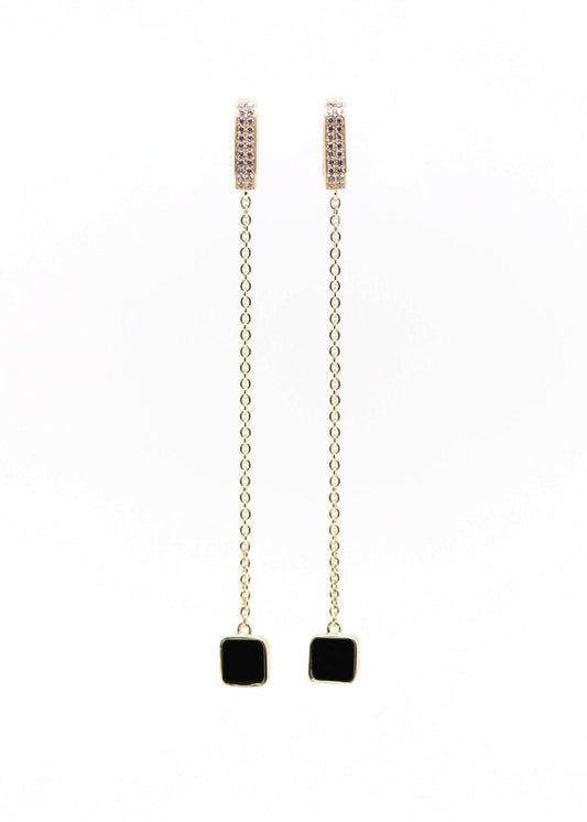 Boucles d'oreilles chaîne Séraphine plaqué or et Onyx noir