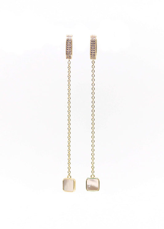 Boucles d'oreilles chaîne Séraphine pendantes plaqué or et nacre