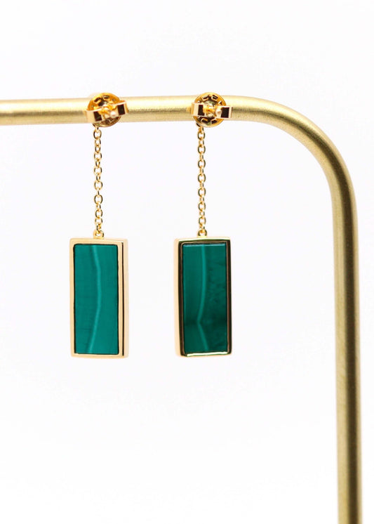 Boucles d'oreilles pendantes Augustine plaqué or Malachite