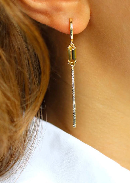 Boucles d'oreilles asymétriques Vivienne plaqué or Citrine