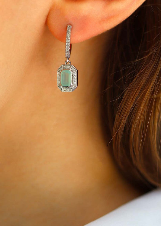 Créoles Art Deco Annette Argent Calcédoine d'eau
